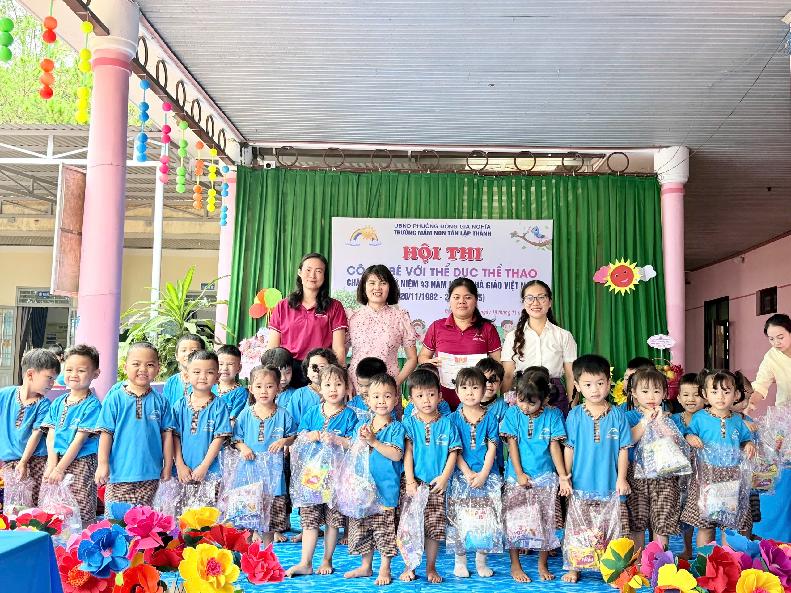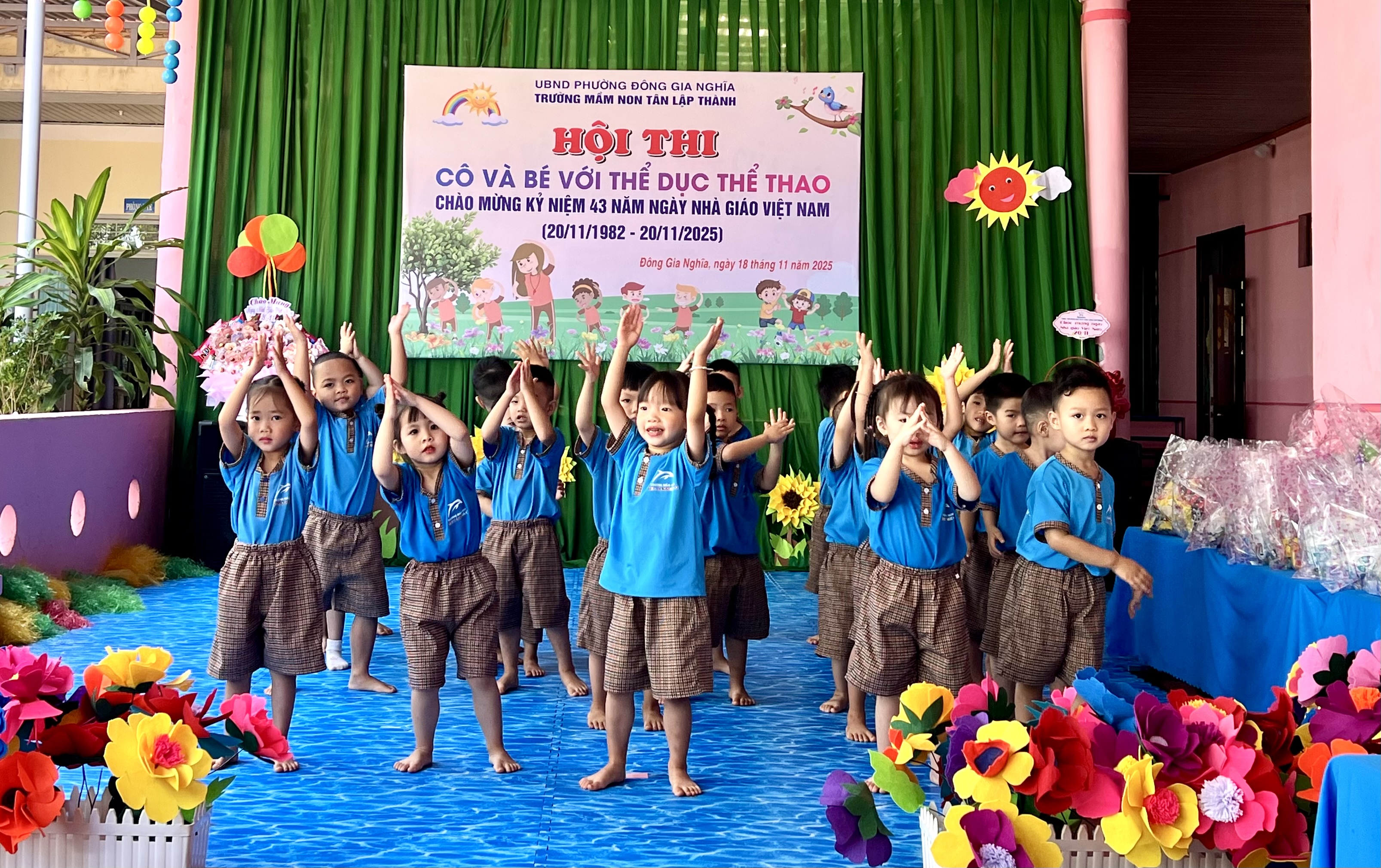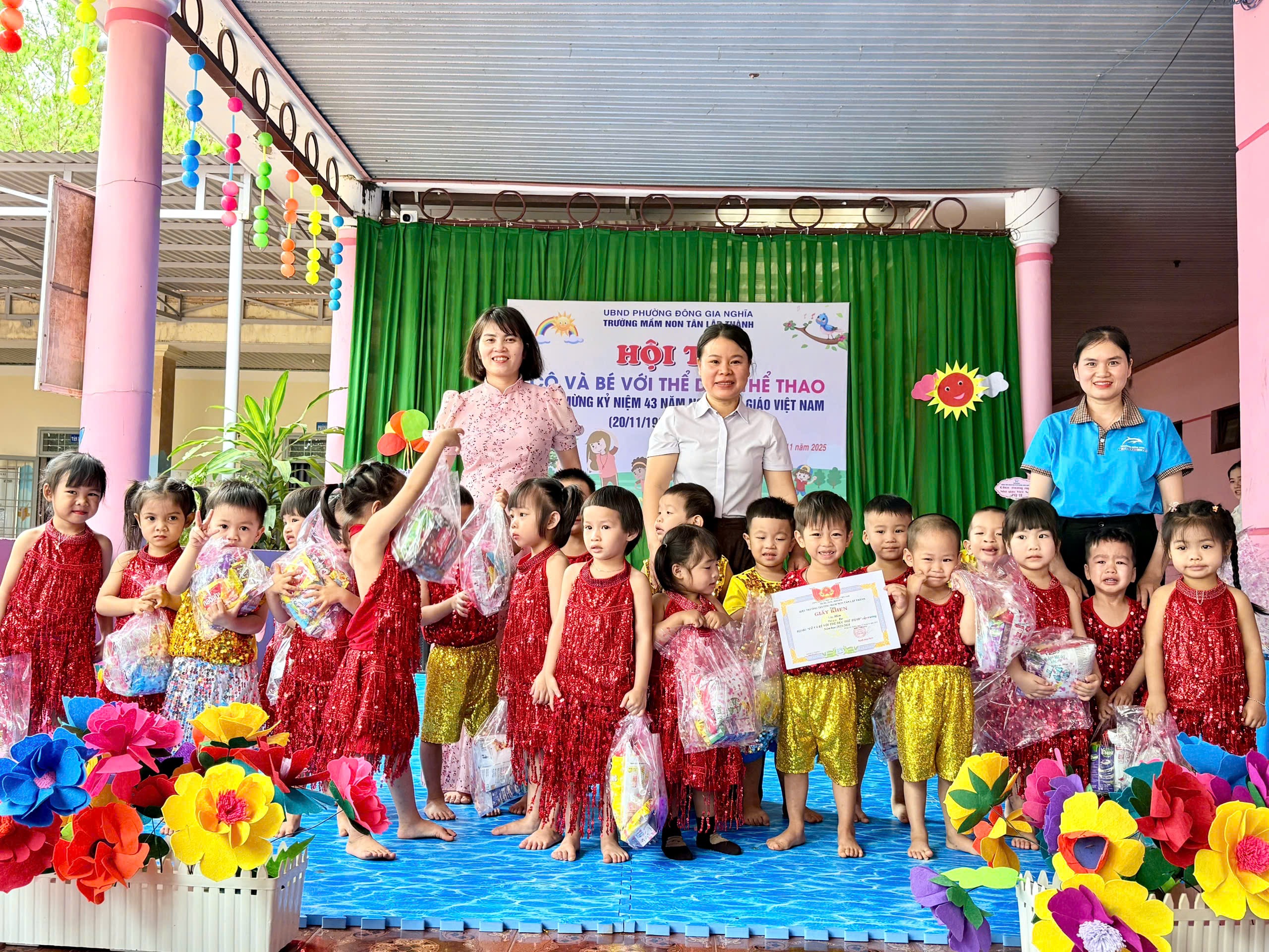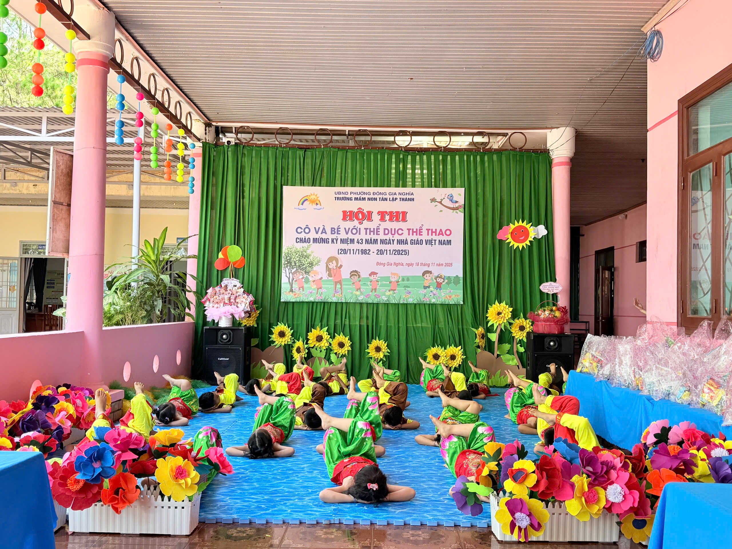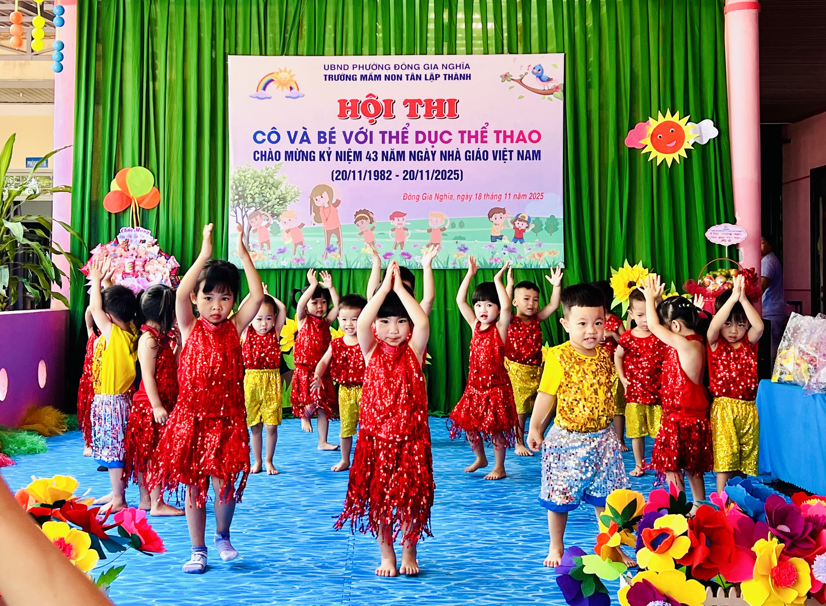 Để chào mừng kỉ niệm 43 năm ngày Nhà giáo Việt Nam. Ngày 18//11/2025 trường MN Tân Lập Thành phối hợp cùng Ban đại diện CMHS toàn trường tổ chức hội thi “Cô và Bé với thể dục thể thao” cấp trường năm học 2025-2026. Với sự tập luyện không ngừng nghỉ, cuộc thi đã thành công tốt đẹp với các giải thưởng như sau: Lớp Lá đạt giải nhất; Lớp Chồi đạt giải nhì; Lớp Mầm đạt giải Ba; và cuối cùng lớp nhà trẻ đạt giải Khuyến khích.