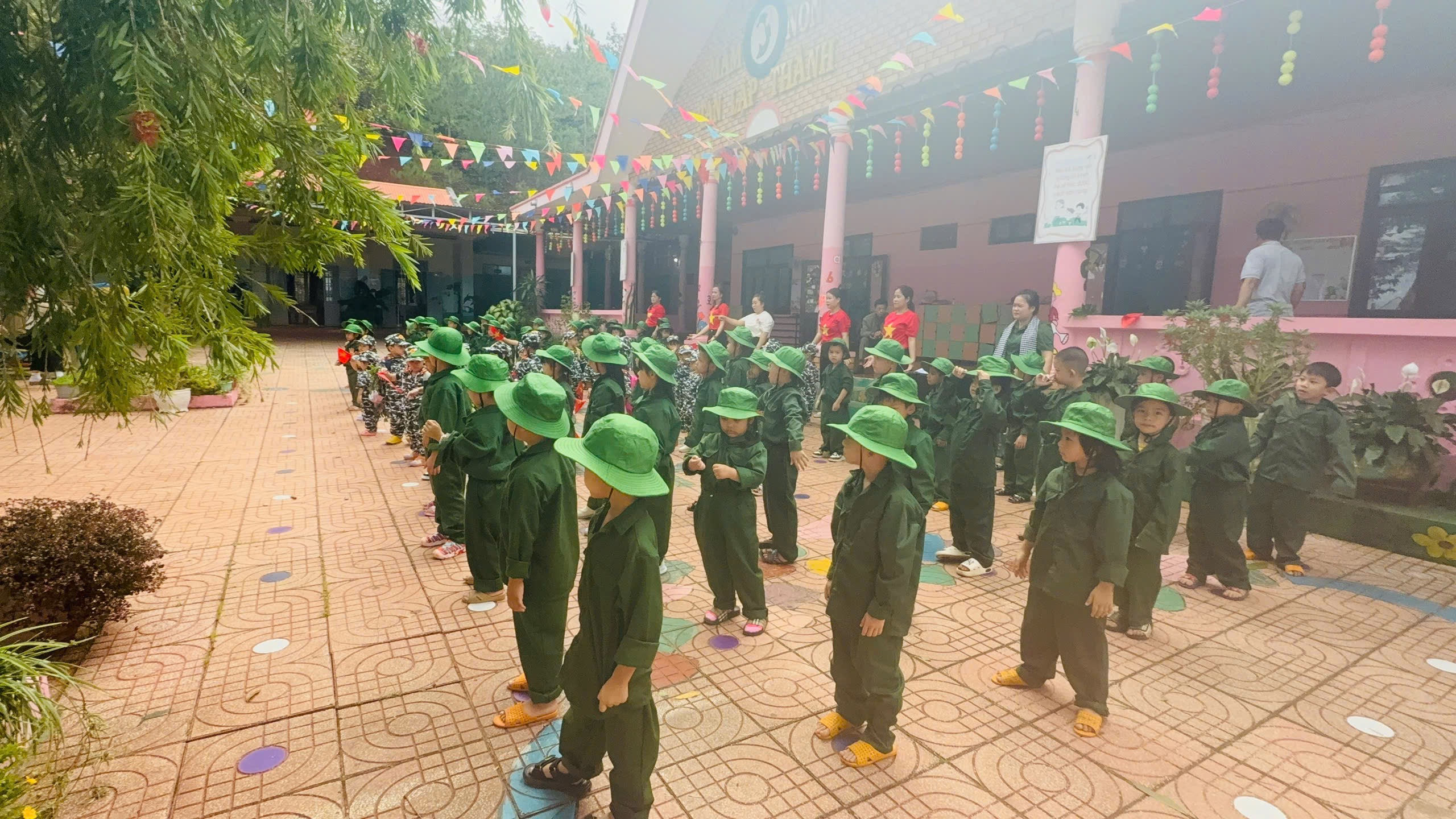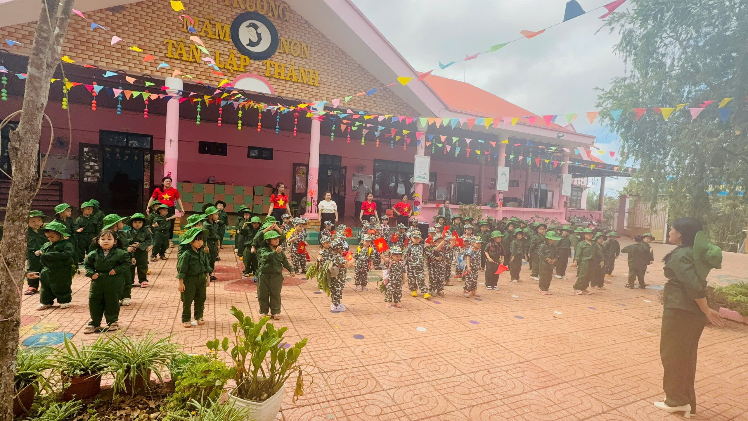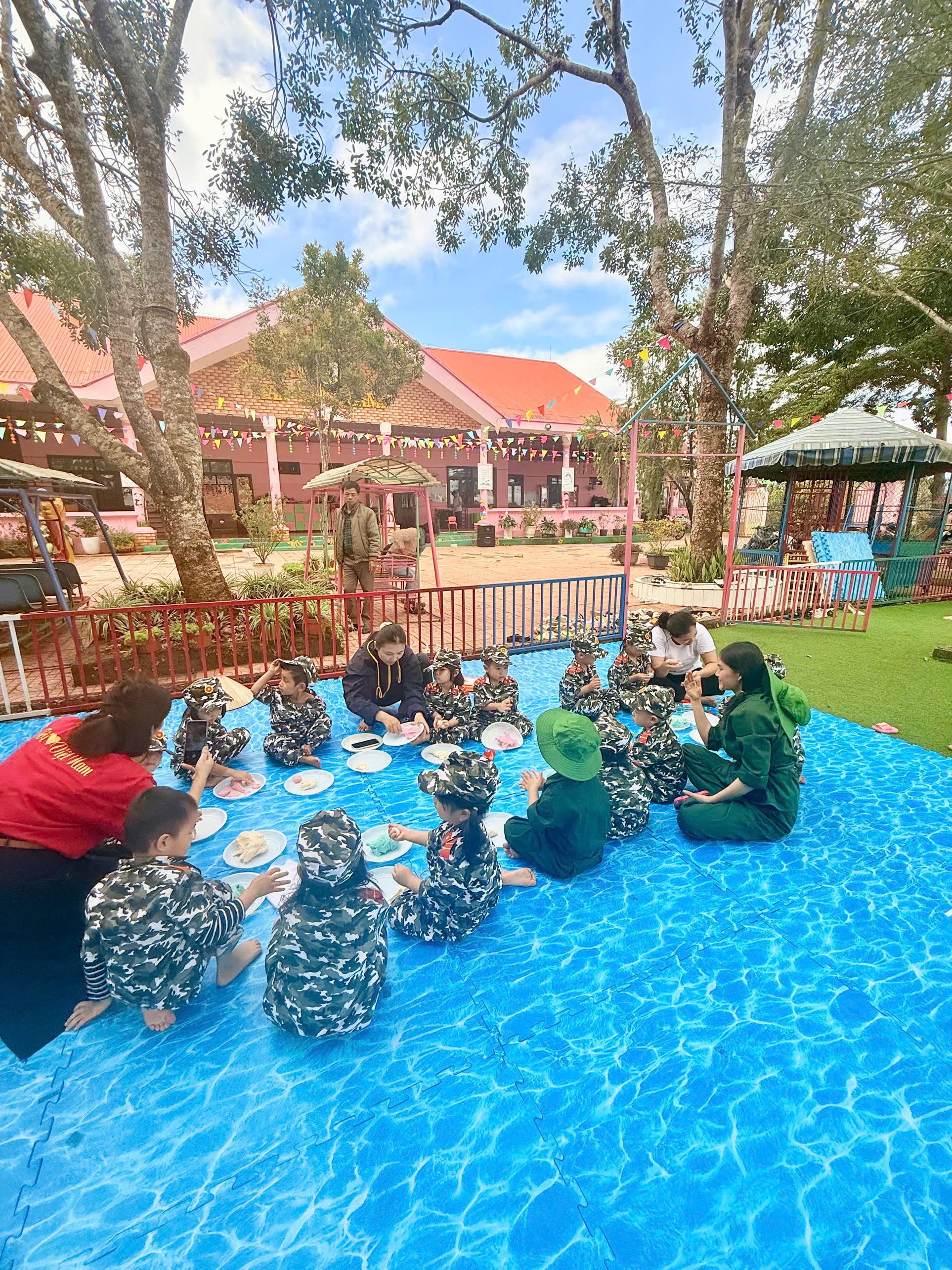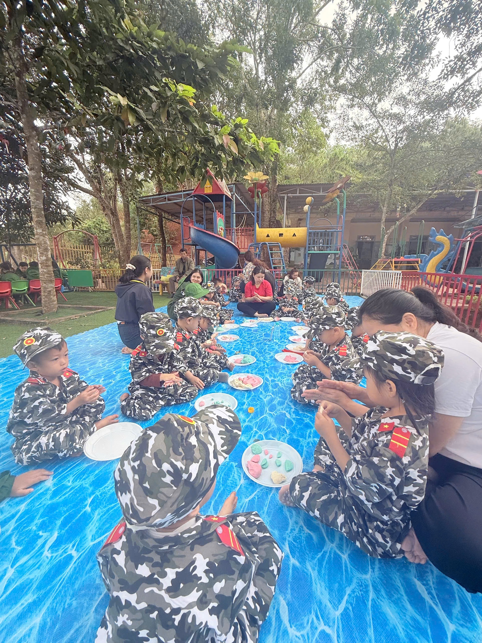 Để chào mừng kỉ niệm 81 năm ngày thành lập lực lượng Quân đội nhân dân Việt Nam 22/12/1944 – 22/12/2025. Tập thể Cán bộ, giáo viên, nhân viên trường MN Tân Lập Thành phối hợp cùng Ban đại diện CMHS tổ chức hoạt động trải nghiệm “Bé làm chú bộ đội”. Một hoạt động vô cùng ý nghĩa, giúp các bé ôn lại ngày truyền thống của Quân đội NDVN, cùng đóng vai mình là những chú bộ đội đi hành quân, những hoạt động làm cơm nắm muối mè, bé làm chú bộ đội bằng cách dán tranh, tô màu, que kem.