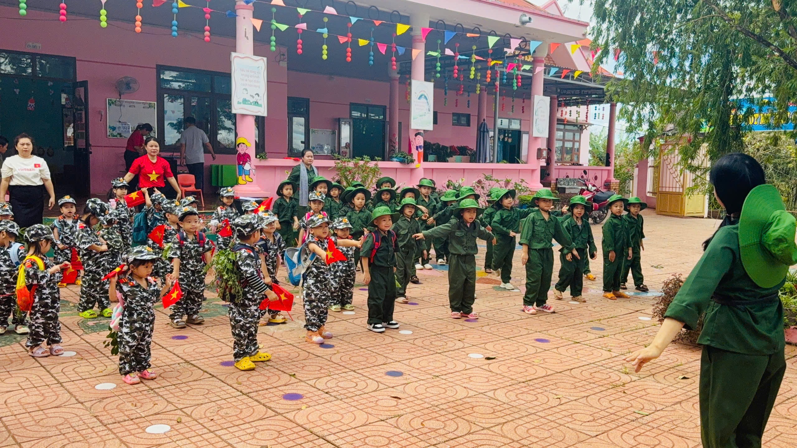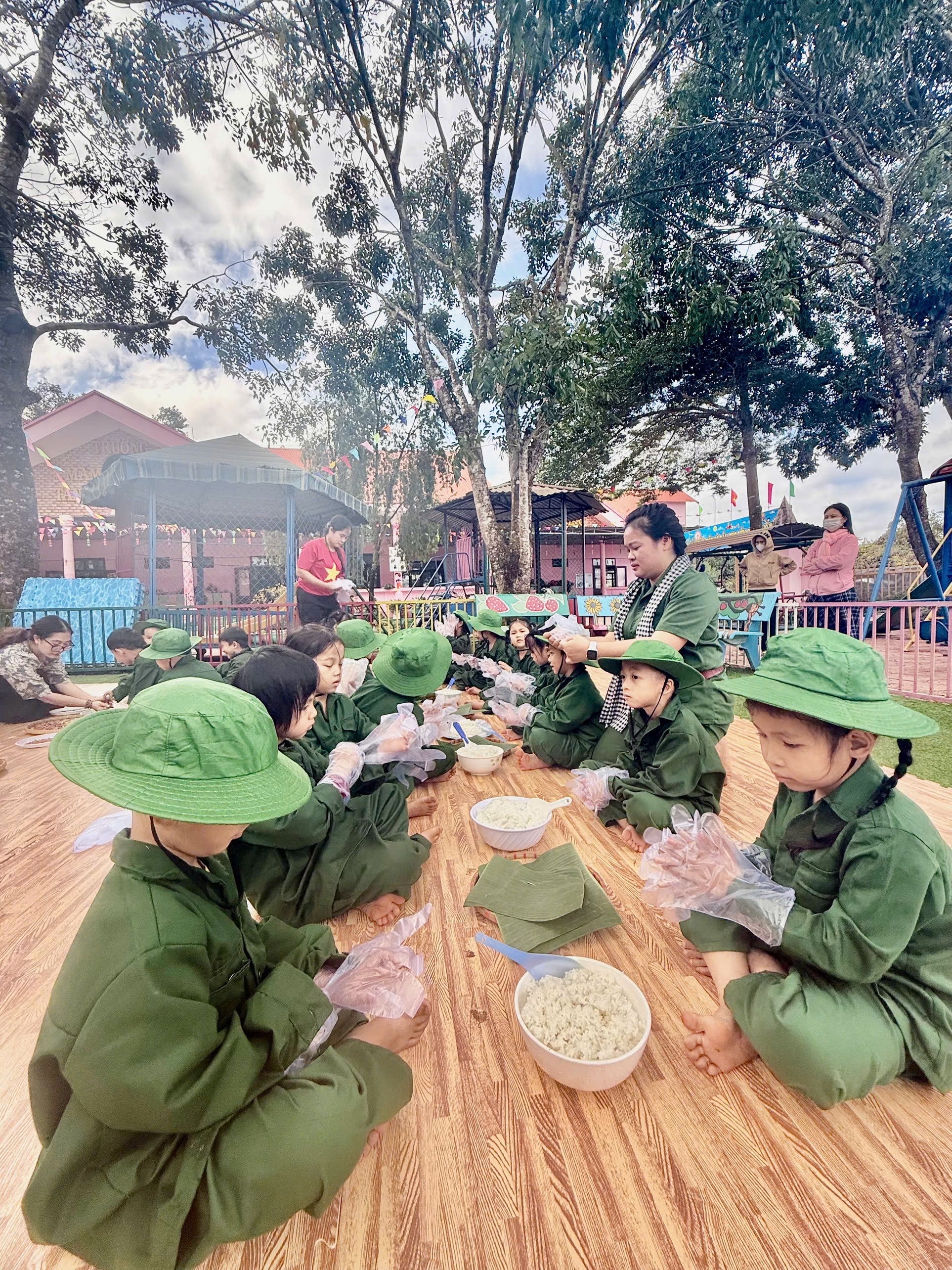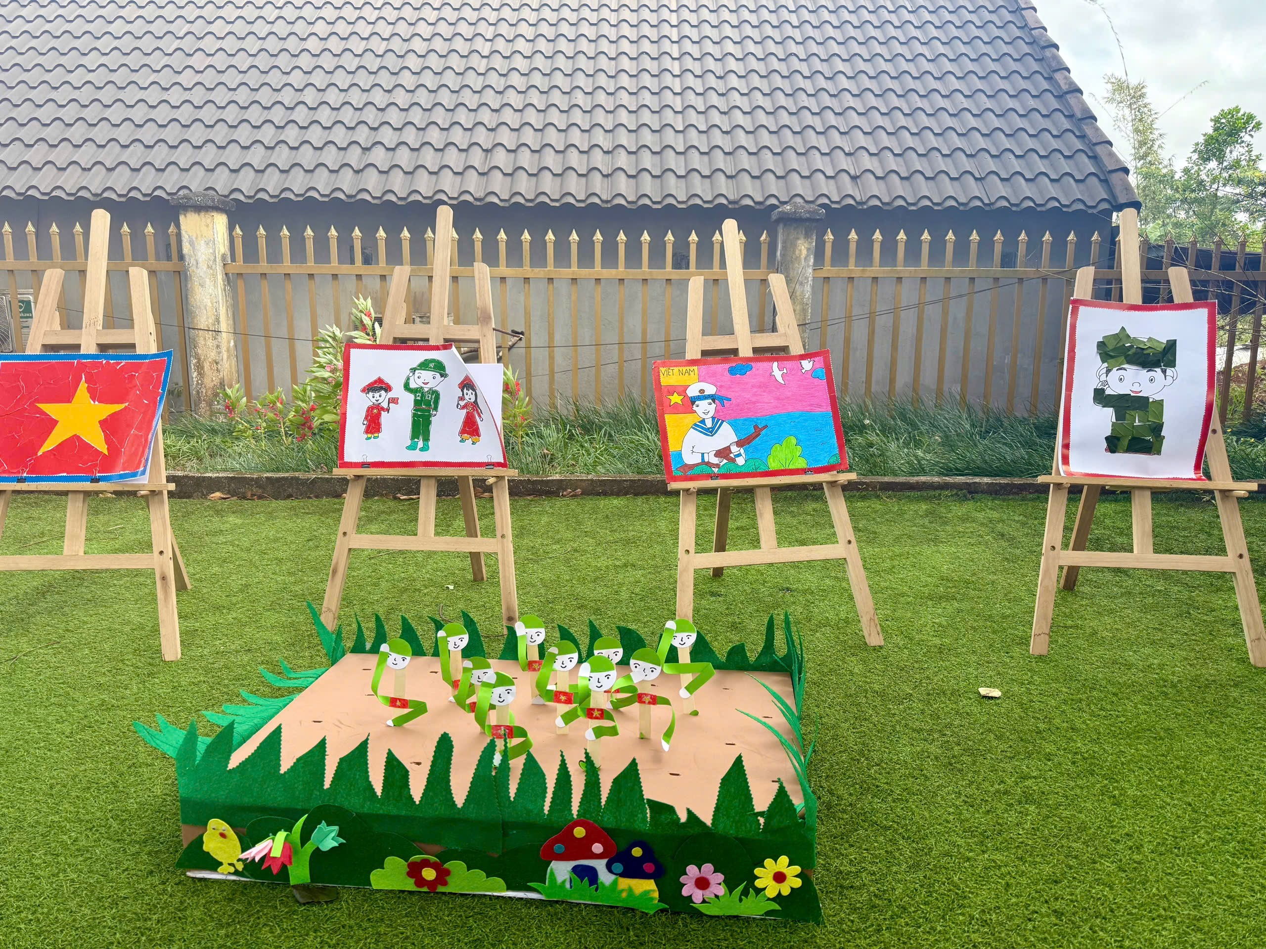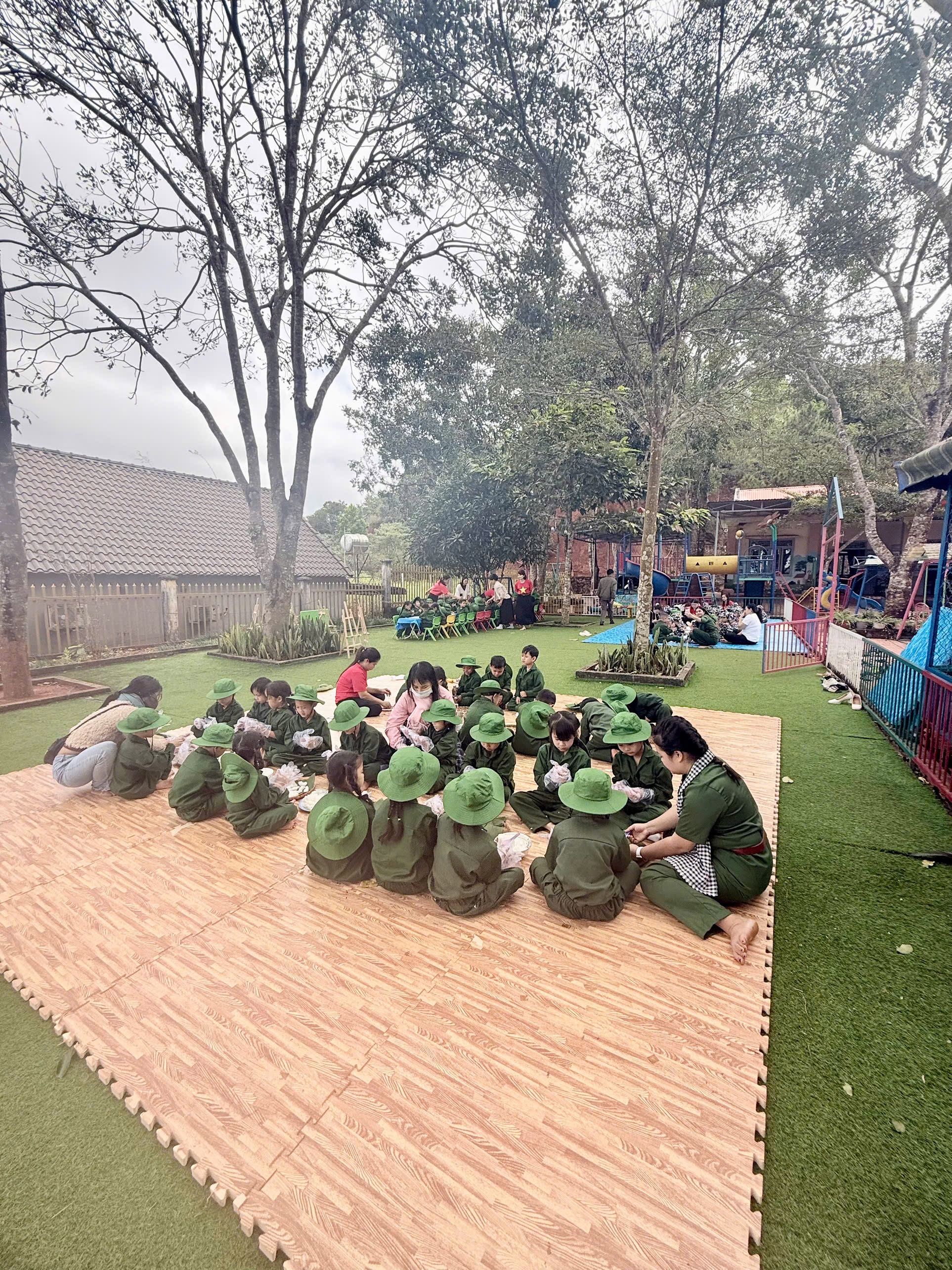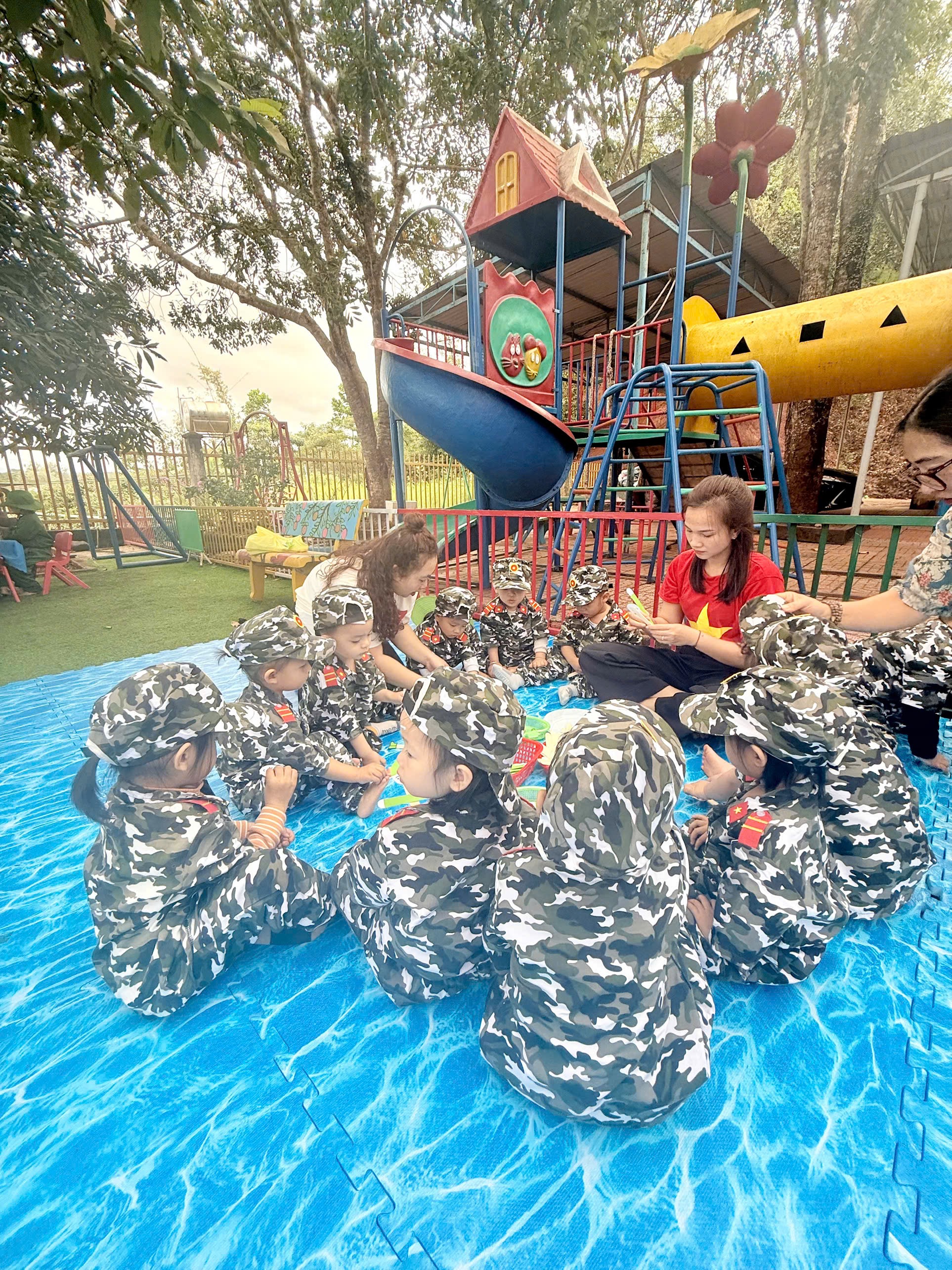 Để chào mừng kỉ niệm 81 năm ngày thành lập lực lượng Quân đội nhân dân Việt Nam 22/12/1944 – 22/12/2025. Tập thể Cán bộ, giáo viên, nhân viên trường MN Tân Lập Thành phối hợp cùng Ban đại diện CMHS tổ chức hoạt động trải nghiệm “Bé làm chú bộ đội”. Một hoạt động vô cùng ý nghĩa, giúp các bé ôn lại ngày truyền thống của Quân đội NDVN, cùng đóng vai mình là những chú bộ đội đi hành quân, những hoạt động làm cơm nắm muối mè, bé làm chú bộ đội bằng cách dán tranh, tô màu, que kem.